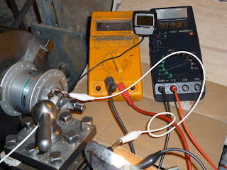 Une dynamo Shimano DH-3 N 20 d'entrée de gamme (20€) prêtée par Radiechen mon vélociste, est montée sur un tour équipé d'une variation de vitesse très précise.